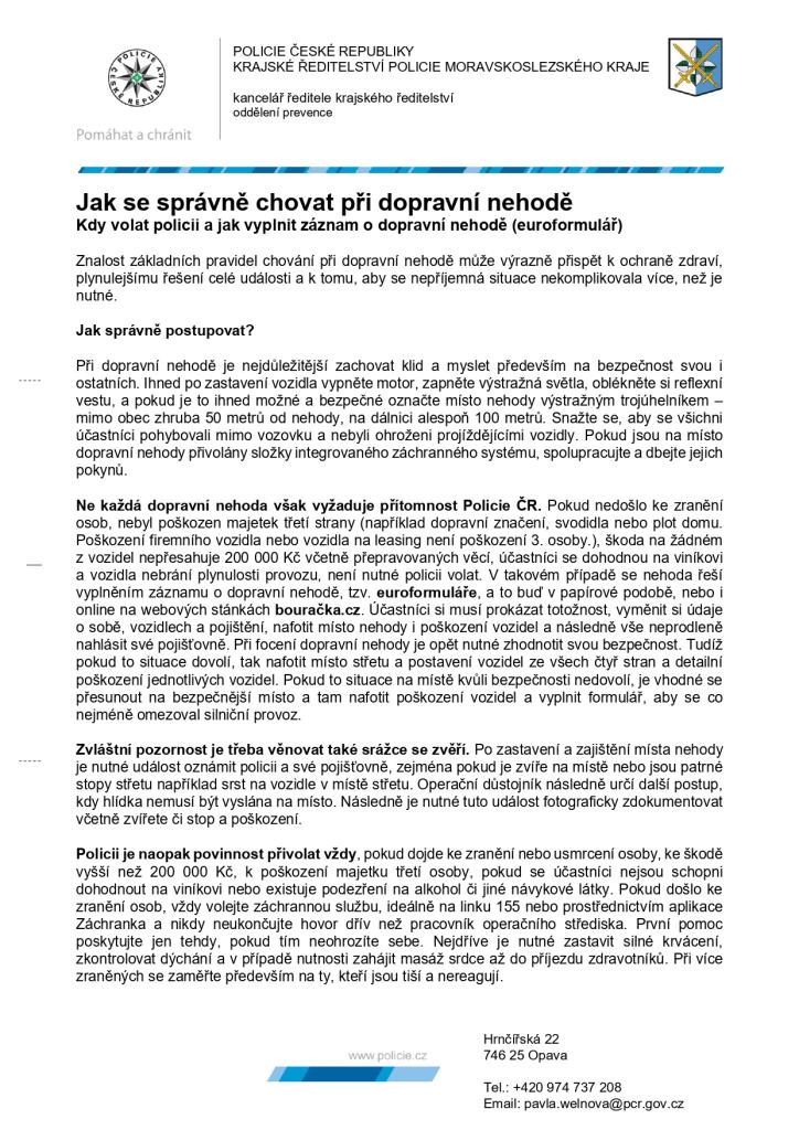 Jak se chovat při dopravní nehodě Typ: PDF dokument, Velikost: 380.77 kB
