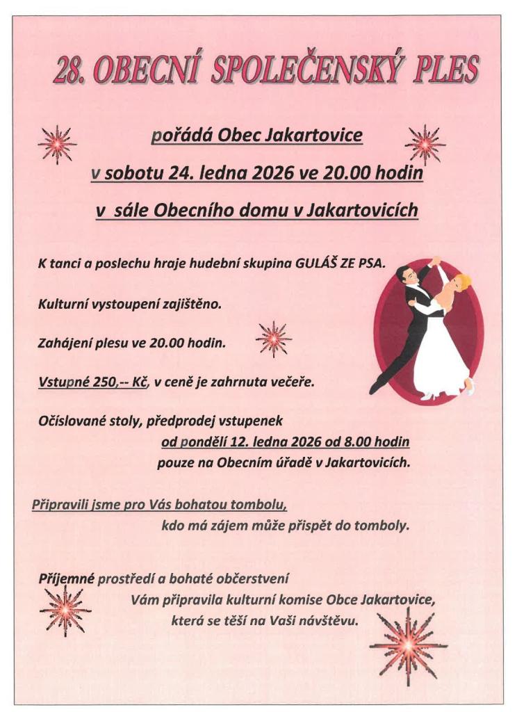 Obecní společenský ples v Jakartovicích - 24. 1. 2026