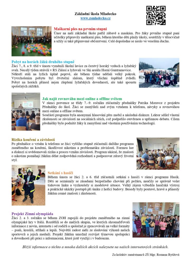 Základní škola Mladecko - informace o uskutečněných akcích - březen 2026